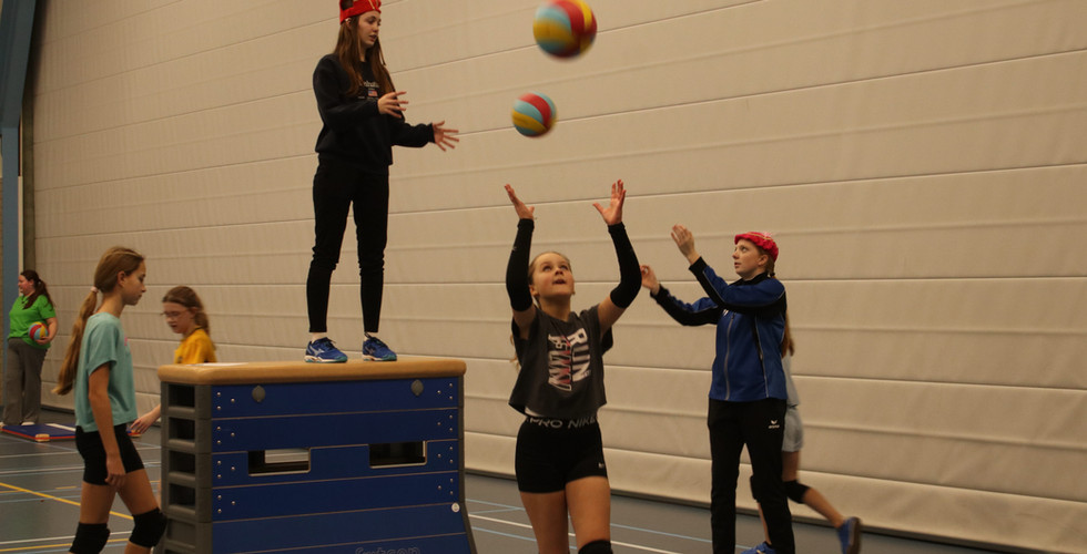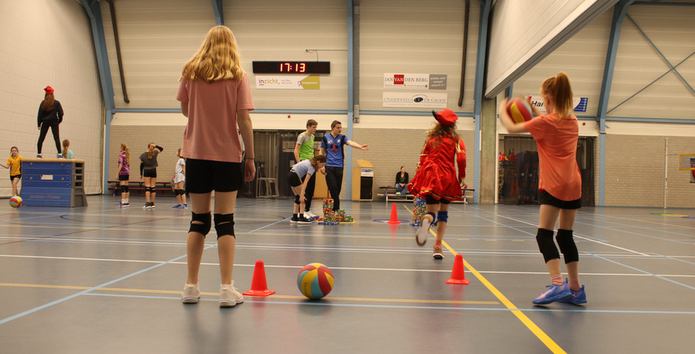Na de training van de volleystars zijn de pieten ook nog even bij de jeugdteams langs geweest en hier even de boel op stelten gezet. De jeugdleden kregen niet zo makkelijk hun cadeau, zij moesten eerst de pieten te pakken zien te krijgen.